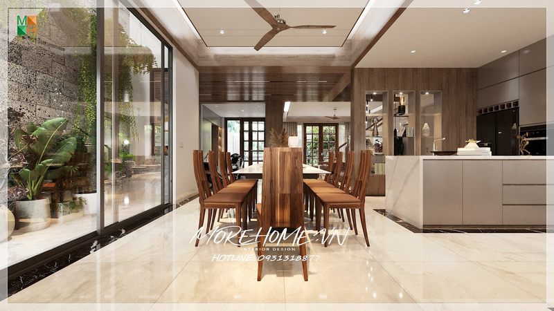 Bàn đảo bếp có thiết kế hiện đại giúp tạo nên không gian tinh tế và sang trọng.
